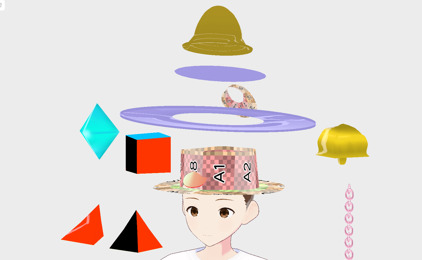 帽子でお役御免と思いきや、髪なのでボーンを仕込んで中の軸や外側を揺らす事ができるメリットがあります。小さいサイズならこの方法がいいでしょう。